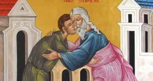 Покаялият се човек знае, че без да се изправи пред лицето на Бога няма да получи прошката, която да въздигне дъгата на надеждата над бездната на греха. Без да поеме отговорност за делата си не може да получи истинска прошка. Прошката следователно не снема отговорността. Тя обвързва с изпитана отговорност, която изисква готовност за поправяне на стореното. Тя е изключителна и необикновена, изпитание на невъзможното и сякаш нарушава обикновения ход на времето. “И стана, та отиде при баща си. И когато беше още далеч, видя го баща му, и му домиля; и като се затече, хвърли се на шията му и го обцелува” (15:20). Бащата пръв вижда сина си “когато беше още далеч” и отново пръв тръгва към него. Това е знак на снизхождане към немощния и духовно прекършен син с любов и желание да възвърне първото му достойнство и да го направи равен на себе си. Съгрешилият човек заслужава строго наказание за делата си, но вместо това получава милост и състрадание, което нарушава естествения ход на последицата. Проявата на милост и състрадание не означават липса на мъжество. Те имат нравствено значение. Те израстват успоредно с неговата любов и са проява на висшата любов. Това ли е възмездието за злото на сина, пита св. Иоан Златоуст? Веселието “не е за злото, а за завръщането, не за лошото, а за промяната към по-добро, не за греха, а за покаянието[13].”