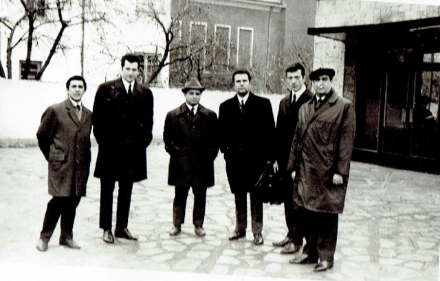 Трима от основателите и членове на вокален квинтет (сега вокален ансамбъл) „Йоан Кукузел – Ангелогласният”: първият отляво надясно – Иван Желев Димитров, вторият отляво надясно – Симеон Николов Димитров (сега Български патриарх Неофит) и петият отляво надясно – Димитър Николов Димитров. Снимката е от началото на 70-те години и на нея присъстват още трима техни колеги от вече разширения състав на хора.