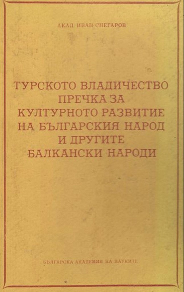 Иван Снегаров, Турското владичество пречка за културното развитие на българския народ и дугите балкански народи