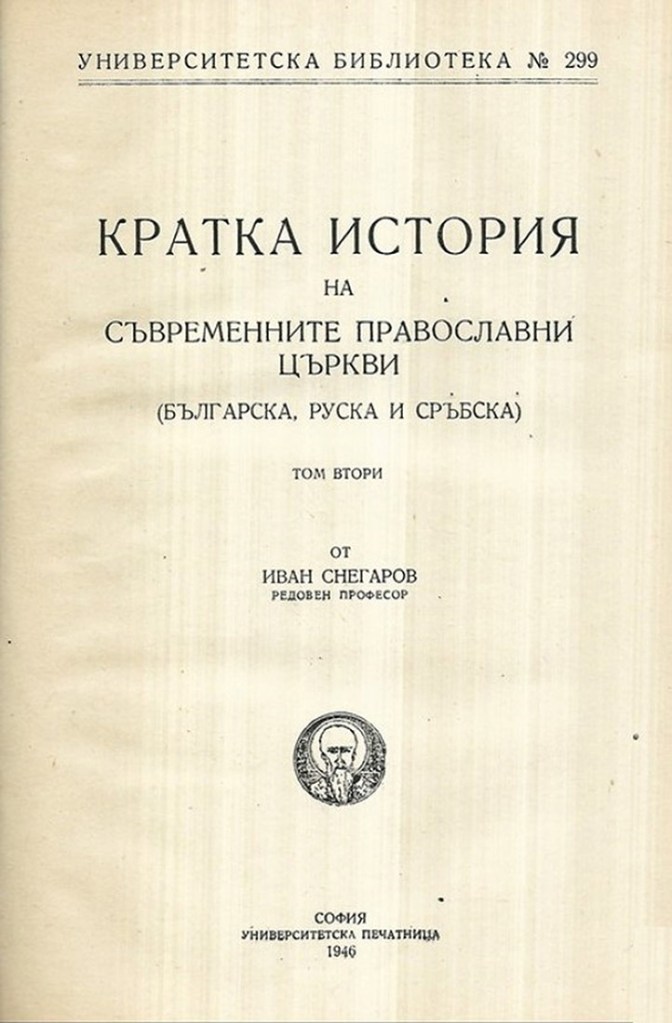 [22]. Снегаров, Ив. Руски опити за предотвратяване и вдигане на схизмата – Македонски преглед, V, № 1, 1-44; № 2, 1-32. Отношенията между Българската църква и другите православни църкви след провъзгласяване на схизмата. – Църковен архив (приложение на „Църковен вестник”), № 3–5 (1926-28 г.). С., 1929, 172+2 с.
