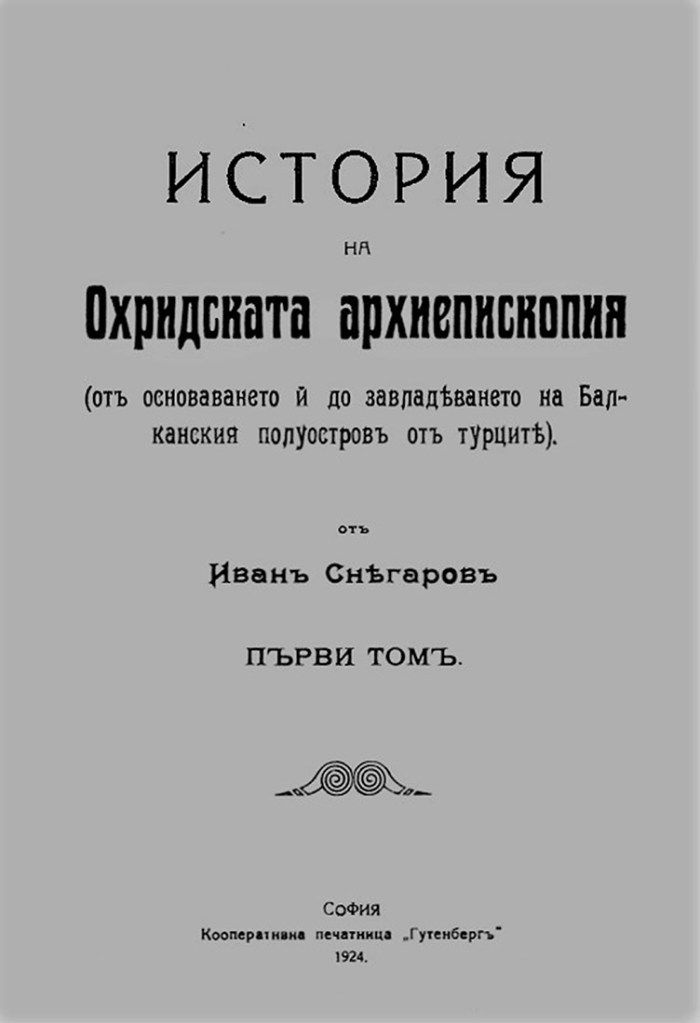 [25]. Снегаров, Ив., Охридската патриаршия (Нейният произход, граници и епархии). С., 1919, 78 с. Библиотека “Балкански въпроси” № 11.
