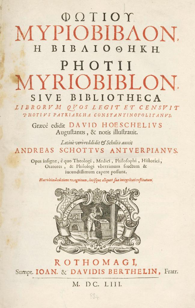 [23]. Hägg, Т., Photios als Vermittler antiker Literatur: Untersuchungen zur Technik des Referierens und Exzerpierens in der Bibliotheke, Upsala 1975, 8, n. 2.