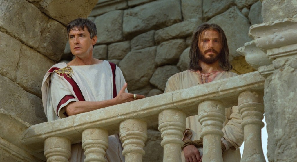Тъй като Палестина била със статут на римска провинция, Синедрионът нямал право да произнася без одобрение на проконсула смъртни присъди. Иисус бил доведен при проконсула Понтий Пилат обвинен, че се представя за цар и подбужда народа към неподчинение на римските власти. При разпита Пилат установил, че доведеният му обвиняем е от Галилея, поради което Го изпратил при управителя на тази област Ирод. Краткият престой при Ирод се ограничил с унижения спрямо Иисус, но вина така и не била намерена.