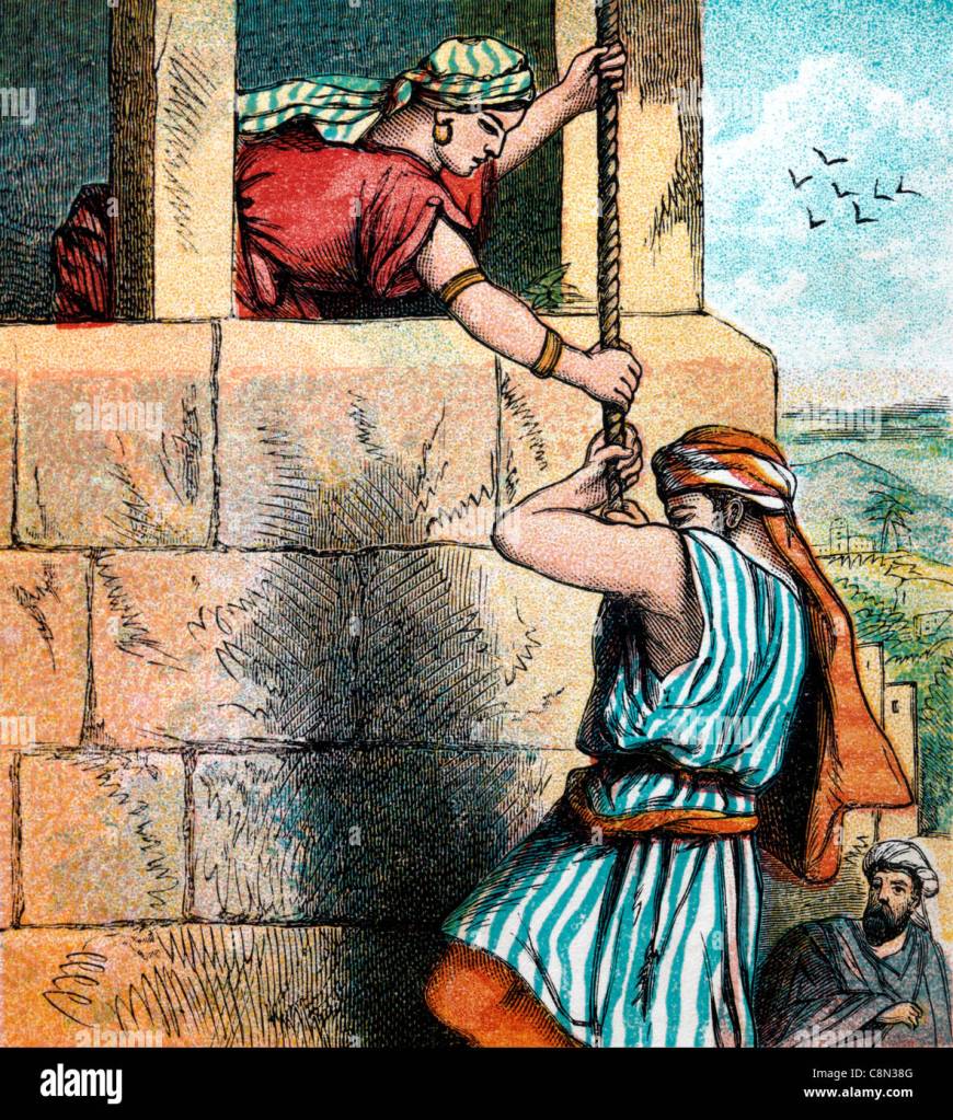 Когато приближил Иерихон, Иисус Навин изпратил там двама момци-съгледвачи, за да съберат тайно сведения за разположението, укрепленията и отбраната на града и за бойния дух на войската и населението. Двамата съгледвачи се промъкнали в крепостта на града и намерили подслон в къщата на Раав, където пренощували. Обаче те били забелязани от градската охрана. Иерихонският цар поискал от Раав да предаде съгледвачите. Но храбрата жена умело ги укрила на покрива, а изпратените да ги търсят отправила по фалшива следа. За това си поведение и за тази си дейност Раав се ръководила от дълбокото си убеждение, че Бог е дал тази земя на израилския народ и всяка съпротива е не само безсмислена и безрезултатна, но и противна на светата Божия воля. След като съгледвачите събрали необходимите сведения, те били спуснати от Раав с въже през прозореца, понеже къщата ѝ стояла на градската стена. Загдето им направила голяма услуга и спасила живота им, съгледвачите дали клетвено обещание на Раав при превземането на града да запазят живи нея, баща ѝ и майка ѝ, братята и сестрите ѝ, всичките ѝ роднини и близки (Иисус Навин 2:1-21).И действително, след превземането на града даденото обещание било изпълнено. По нареждане на Иисус Навин, Раав заедно с родителите, братята, сестрите, роднините и близките ѝ била изведена от къщата и настанена на сигурно място вън от израилския стан, а всички други жители били изклани и градът, заедно с всичко в него, предаден на огън (Иисус Навин 6:20-24).
