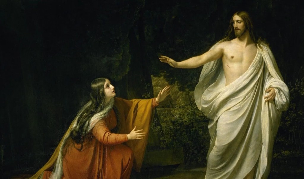 Изображения: Александър Андреевич Иванов (1806-1858), Възкръсналият Христос се явява първо на св. Мария Магдалина и св. Мария Магдалина. Източник Яндекс РУ.