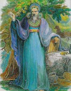 Амайрген, Талиесин, Катбад, Мерлин (Мирдин) – едни от най-известните имена в цялата келтска история и все имена на друиди. Това е закономерно, защото друидите са били духовните представители, интелектуалната класа на келтското общество. Както Страбон, така и Плиний Стари считали, че думата druid е близка до гръцката δρоύσ=дъб. По-точно е, обаче, произходът ѝ да се търси в съставната дума от корените dru-wid=знание на дъба, произхождаща от санскритската vid=виждам, зная. Както личи от името им, келтските духовни ръководители в най-голяма степен са развили идеята за свещеността на дъба, на дърветата въобще, идея, която отразява връзката между най-величественото дърво и жреческата институция, между “царя на гората” и върховните небесни божества.
